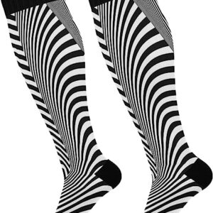 Black White Optical Illusion Fashion Socks for Women and Men Sport Knee High Compression Socks Support for Running Hiking Fitness