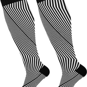 Black Wavy Stripes White Fashion Socks for Women and Men Sport Knee High Compression Socks Support for Running Hiking Fitness