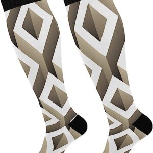 Abstract Box Fashion Socks for Women and Men Sport Knee High Compression Socks Support for Running Hiking Fitness
