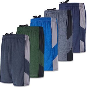 5-Pack Youth Dry-Fit Active Athletic Basketball Gym Shorts with Pockets Boys & Girls