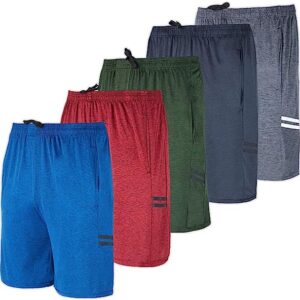 5 Pack:Men’s Dry-Fit Sweat Resistant Active Athletic Performance Shorts