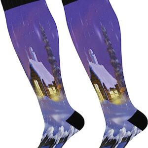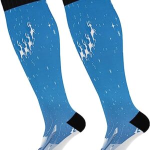 Compression Socks for Women and Men Sport Knee High Socks Support for Running Hiking Fitness Christmas Ice and Snow