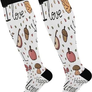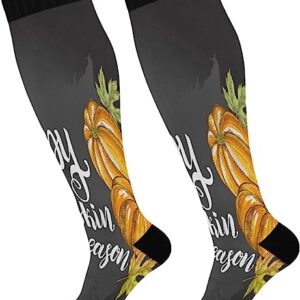 Compression Socks for Women and Men Sport Knee High Socks Support for Running Hiking Fitness Enjoy Autumn Leaves and Pumpkins
