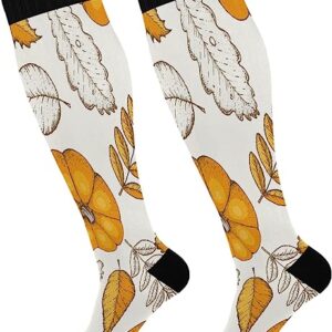 Compression Socks for Women and Men Sport Knee High Socks Support for Running Hiking Fitness Autumn Leaves and Pumpkins