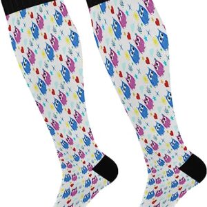 Compression Socks for Women and Men Sport Knee High Socks Support for Running Hiking Fitness Cute Owl Couple