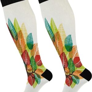 Compression Socks for Women and Men Sport Knee High Socks Support for Running Hiking Fitness Wood Texture and Autumn Color Leaves