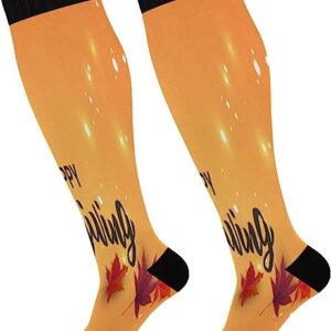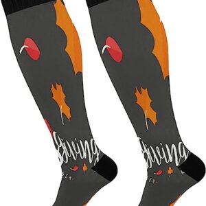 Happy Thanksgiving Fashion Socks for Women and Men Sport Knee High Compression Socks Support for Running Hiking Fitness