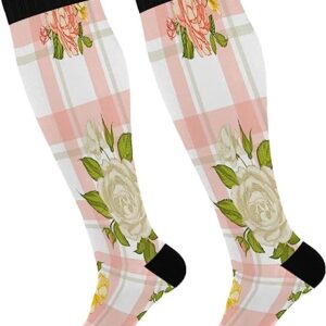 Rose Plaid Fashion Socks for Women and Men Sport Knee High Compression Socks Support for Running Hiking Fitness