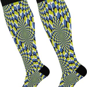 Spin Illusion Fashion Socks for Women and Men Sport Knee High Compression Socks Support for Running Hiking Fitness