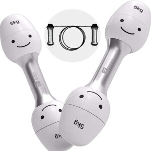 Dumbbells Jump Rope 2 in 1 with Aluminum Handles, Adjustable Smiley Dumbbell (6lbs and 11lbs) for Home Decoration, Muscle Toning, Strength Building