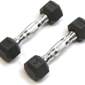 Gympak Rubber Hex Dumbbells (1 Pair), Black, 3 lb