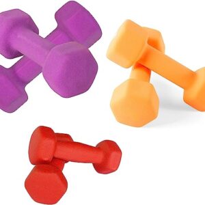 Portzon Set of 2 Neoprene Dumbbell Hand Weights, Anti-Slip, Anti-roll, Hex Shape Colorful