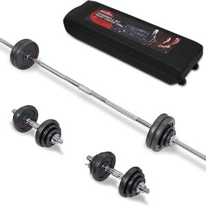 STOZM Dumbbell Set 110lbs Chrome and Paint Coated with Carry Case ? Versatile Chrome Dumbbell Set with Barbell, Connector, 20 Weight Plates, 2 Dumbbell Handles & 6 Collars