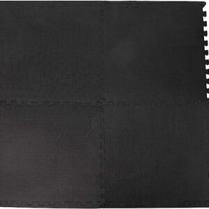 Mind Reader Locking Fitness and Exercise EVA Foam Puzzle Home Gyms, Interlocking Protective Floor Tiles, MMA Mat, Black, 4 Piece