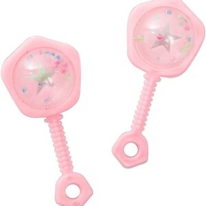 2.5″ Mini Plastic Pink Rattle Girl Baby Shower Favor Charms, 6ct