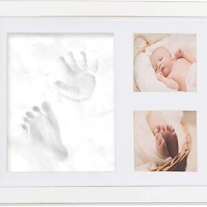 Home Traditions Baby Handprint & Footprint Kit Frame for Newborn Boys & Girls, Personalized Gifts, Shower Registry, Keepsake Box, Nursery Decor – Holds Two 3×3 Images & Clay Included, White