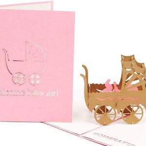 HUNGER Handmade 3D Pop Up Congrats Greeting Cards for Newborn Babies Gifts New Parents (Baby Girl)
