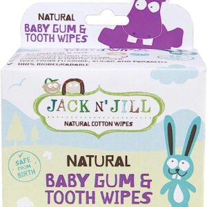Jack N’ Jill Baby Gum & Tooth Wipes – Neutral Flavor – All-Natural & Safe, 100% Soft Cotton, Steam Sterilized, Gently Textured – Fluoride Free, Sugar Free, Parabens Free – 25 Pack
