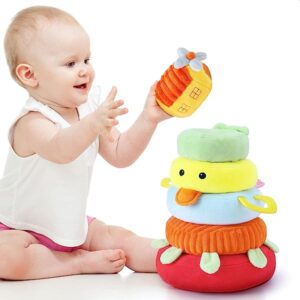 iPlay, iLearn Baby Stacking Toys, Soft Fabric Ring Stacker, Plush Duck Nesting Toy W/ Sound, Development Sensory, Birthday Gift for 3 6 9 12 18 Months 1 Year Olds Infant Toddler Boy Girl Newborn