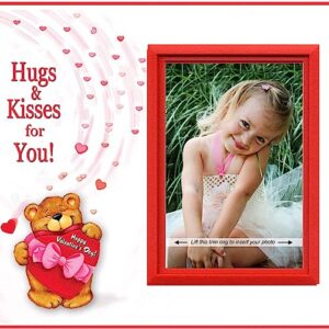 HUGS & Kisses for You! I Love You Photo Frame for Valentines | Easy to Mail Frame is 8.25 x 7 inches, Holds 3.5 x 5 Photo | Red Valentine Theme with Super Cute Bear