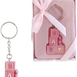 Lunaura Baby Keepsake – Set of 12″Girl” Teddy Bear Sitting on Baby Blocks Key Chain Favors – Pink