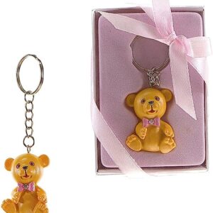 Lunaura Baby Keepsake – Set of 12″Boy” Teddy Bear with Bowtie Key Chain Favors – Pink