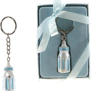 Lunaura Baby Keepsake – Set of 12″Boy” Baby Bottle with Crystals Key Chain Favors – Blue