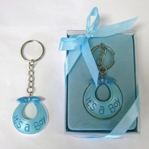 Lunaura Baby Keepsake – Set of 12″Boy” Baby Bib Key Chain Favors – Blue