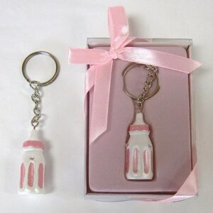 Lunaura Baby Keepsake – Set of 12″Girl” Baby Bottle with Crystals Key Chain Favors – Pink