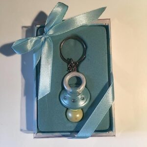 Lunaura Baby Keepsake – Set of 12″Boy” Baby Pacifier with Crystals Key Chain Favors – Blue