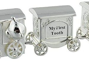 Baby Gifts WBM-GFT14 Harts Train with 2 Carriages Tooth and Curling Box Silver Plated Clear 200g