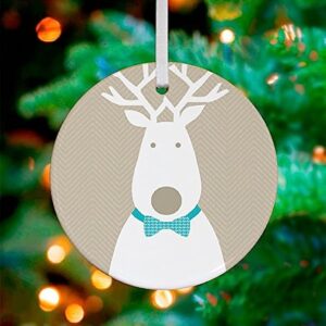 Oopsy Daisy Keepsake Ornament, Bow Tie Reindeer/Natural, 3″x 3″