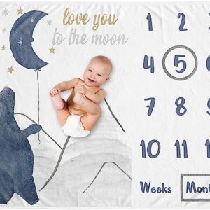 Sweet Jojo Designs Woodland Bear Boy Girl Milestone Blanket Monthly Newborn First Year Growth Mat Baby Shower Memory Keepsake Gift Picture – Navy Blue Grey Gold Black Celestial Moon Star Watercolor