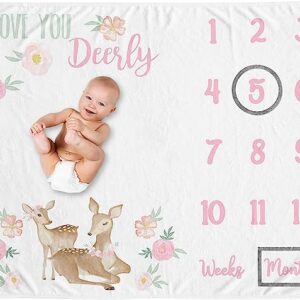 Sweet Jojo Designs Woodland Deer Girl Milestone Blanket Monthly Newborn First Year Growth Mat Baby Shower Memory Keepsake Gift Picture – Blush Pink Mint Green Boho Watercolor Forest Love You Deerly