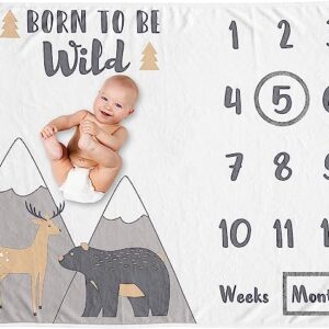 Sweet Jojo Designs Woodland Animals Boy Girl Milestone Blanket Monthly Newborn First Year Growth Mat Baby Shower Memory Keepsake Gift Picture – Beige Grey White Boho Mountain Forest Friends Deer Bear