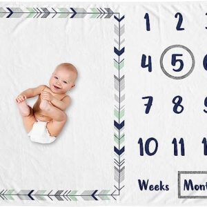Sweet Jojo Designs Woodland Arrow Boy or Girl Milestone Blanket Monthly Newborn First Year Growth Mat Baby Shower Memory Keepsake Gift Picture – Grey Navy Blue and Mint Green Gender Neutral