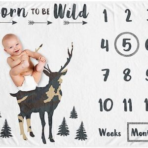 Sweet Jojo Designs Woodland Camo Deer Boy Milestone Blanket Monthly Newborn First Year Growth Mat Baby Shower Memory Keepsake Gift Picture – Beige Green Black Rustic Forest Animal Camoflauge Arrows