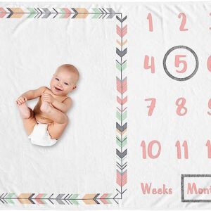 Sweet Jojo Designs Woodland Arrow Girl Milestone Blanket Monthly Newborn First Year Growth Mat Baby Shower Memory Keepsake Gift Picture – Grey Coral Pink and Mint Green