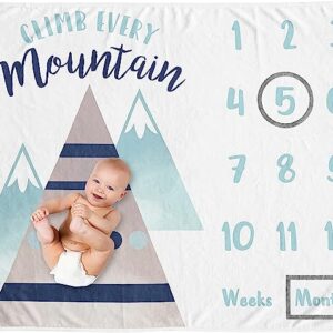 Sweet Jojo Designs Watercolor Mountains Boy or Girl Milestone Blanket Monthly Newborn First Year Growth Mat Baby Shower Memory Keepsake Gift Picture – Navy Blue Aqua Grey Aztec Gender Neutral Mountain