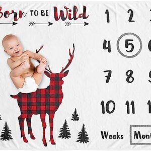 Sweet Jojo Designs Woodland Buffalo Plaid Boy Milestone Blanket Monthly Newborn First Year Growth Mat Baby Shower Memory Keepsake Gift Picture – Red Black Rustic Country Deer Lumberjack Arrow Forest