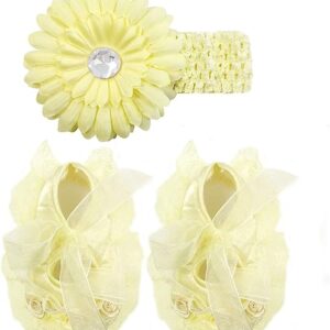 Wrapables Floral and Lace Keepsake Shoes and Headband Set, Yellow Size 12