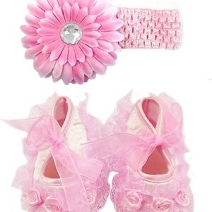 Wrapables Floral and Lace Keepsake Shoes and Headband Set, Pink Size 11