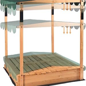 LYNSLIM Wooden Covered Sandboxes for Kids Outdoor – 47″X47″ Large Sandbox with Adjustable Height Canopy and 2 Foldable Bench Seats for Backyard Home Garden Beach