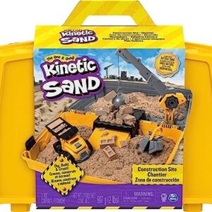 Kinetic Sand, Construction Site Folding Sandbox Playset with Vehicle and 2lbs, for Kids Aged 3 and up