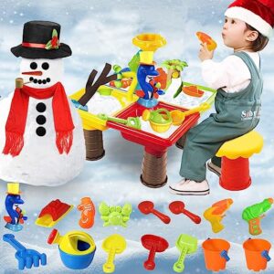 SupAI 4 in 1 Snow Toys Table for Kids, 32 PCS Snow Molds Tool Kit Play Activity Table Sandbox Toys Sensory Table,Snow Toys Winter Outdoor Toys Sand Table for Toddlers Boys Girls 1 2 3 4 5+Year Old