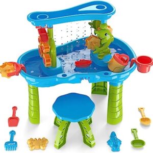 TEMI Kids Sand and Water Table, Toddler Activity Table Sandbox Toy Sensory Table Outdoor Toy Beach Play Table 27 Pcs Accessories for Kids Toddlers Children