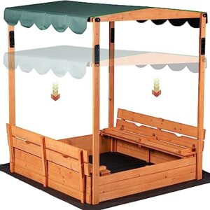 Wooden Outdoor Kids Sandbox Convertible Canopy Covered Sand Box Bench Seat Storage