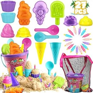 TOY Life Beach Sand Toys for Kids,27 PCS Ice Cream Sand Toys for Kids, Sandbox Toys with Beach Bucket, Shovel, Sand Ice Cream Molds, Sand Toy for Toddler with Carrying Net, Beach Toys Kids 3-10