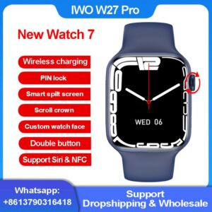 2021 New IWO W27 Pro Smart Watch Series 7 Wireless Charging Bluetooth Call Split Screen PIN Lock Smartwatch 14 Support Siri NFC
