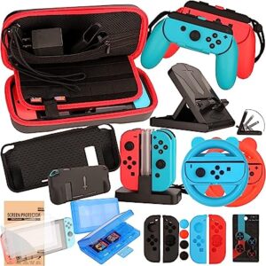 EOVOLA Accessories Kit for Nintendo Switch / Switch OLED Model Games Bundle Wheel Grip Caps Carrying Case Screen Protector Controller